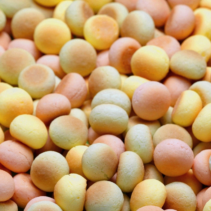 含雞肉風味、胡蘿蔔、波菜三種口味製成的小饅頭餅乾,