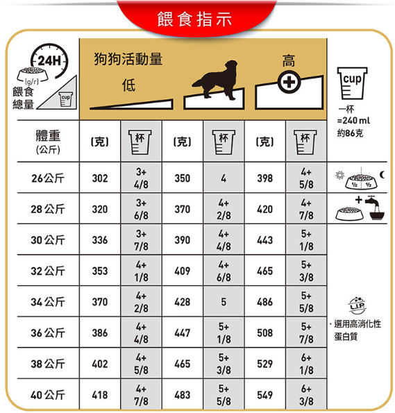 通過調整當中的卡路里含量,讓金毛尋回犬維持在理想的體重狀態。