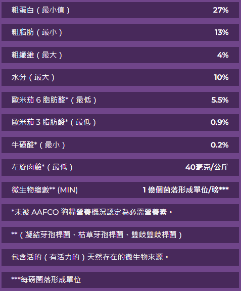 這種配方適用於所有品種的幼犬、成犬和老年犬